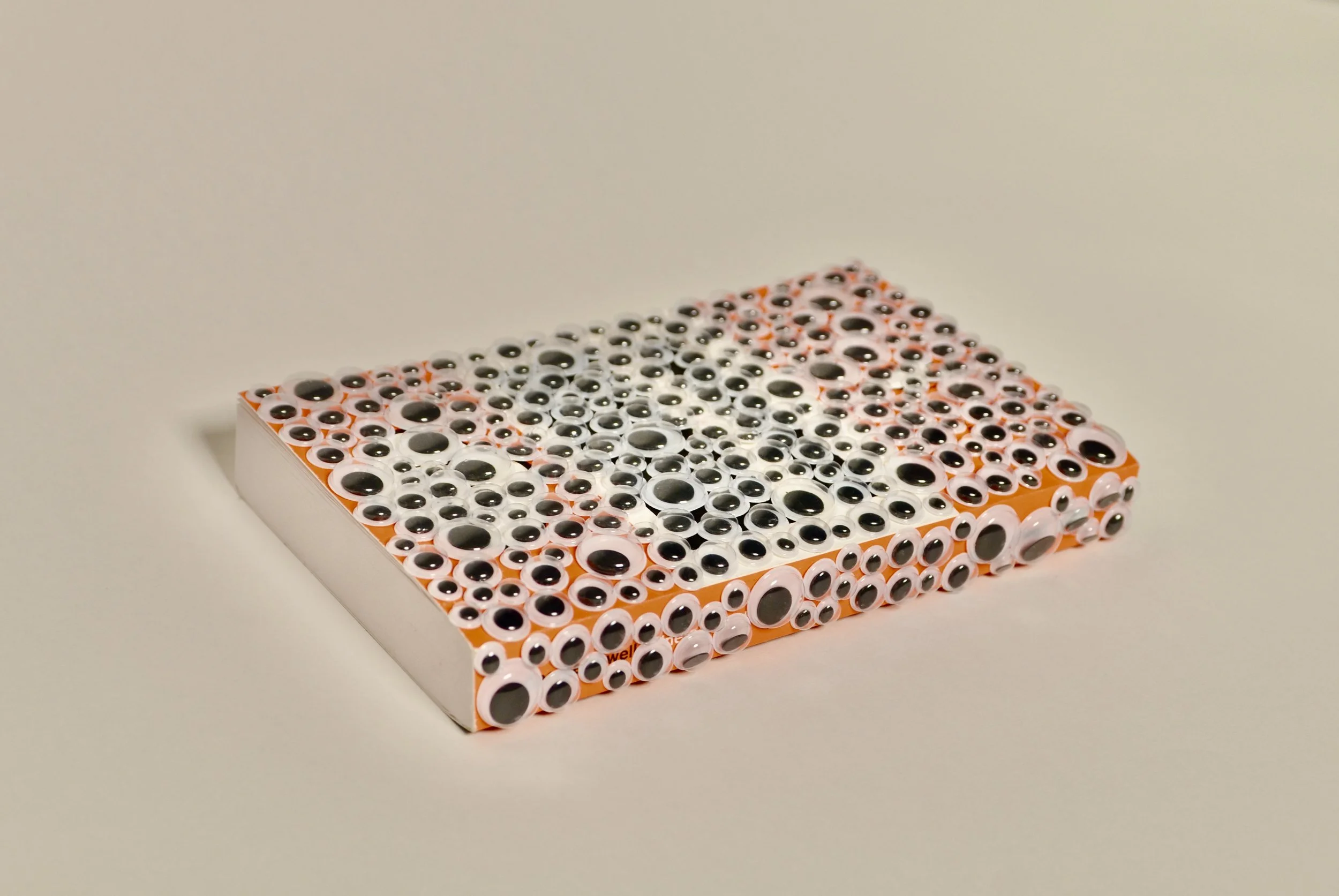 Cover Story is an altered book. Consisting of George Orwell’s famous dystopian novel about being watched, 1984, it is covered in googly eyes.